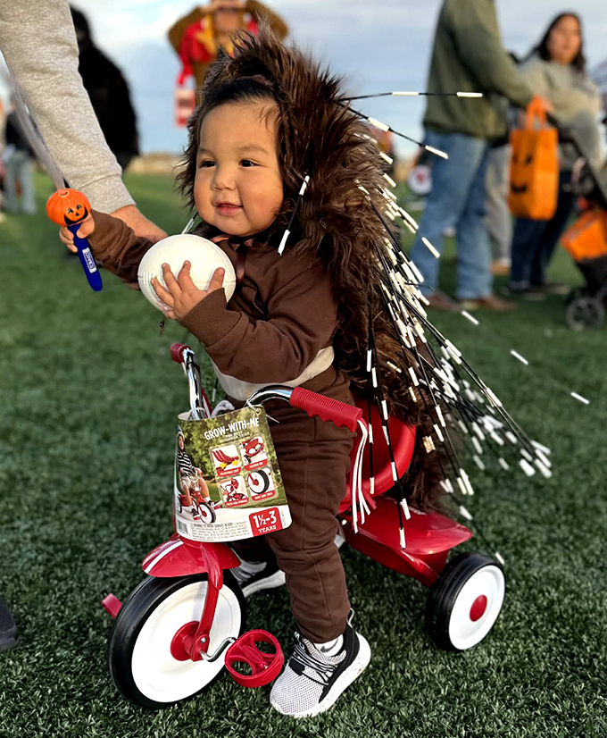 FORT WASHAKIE, Wyo. — A handmade porcupine outfit Frank McAdams Jr. wore on Halloween has gone viral on social media and won him a new bike.