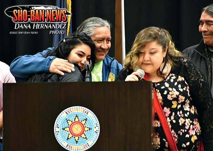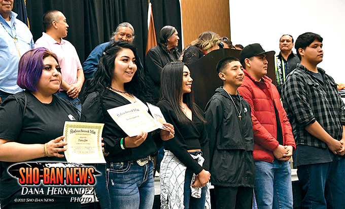 Fort Hall Business Council members, Ladd Edmo, Roland Marshall, Lee Juan Tyler, Nathan Small, Marlene Skunkcap, Elma Thompson, and Chairman Devon Boyer were present for the event to present the graduates with words of encouragement.