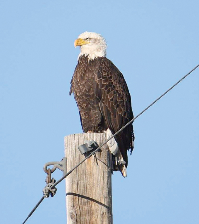 Most popular photo of an eagle on top of a power line pole.