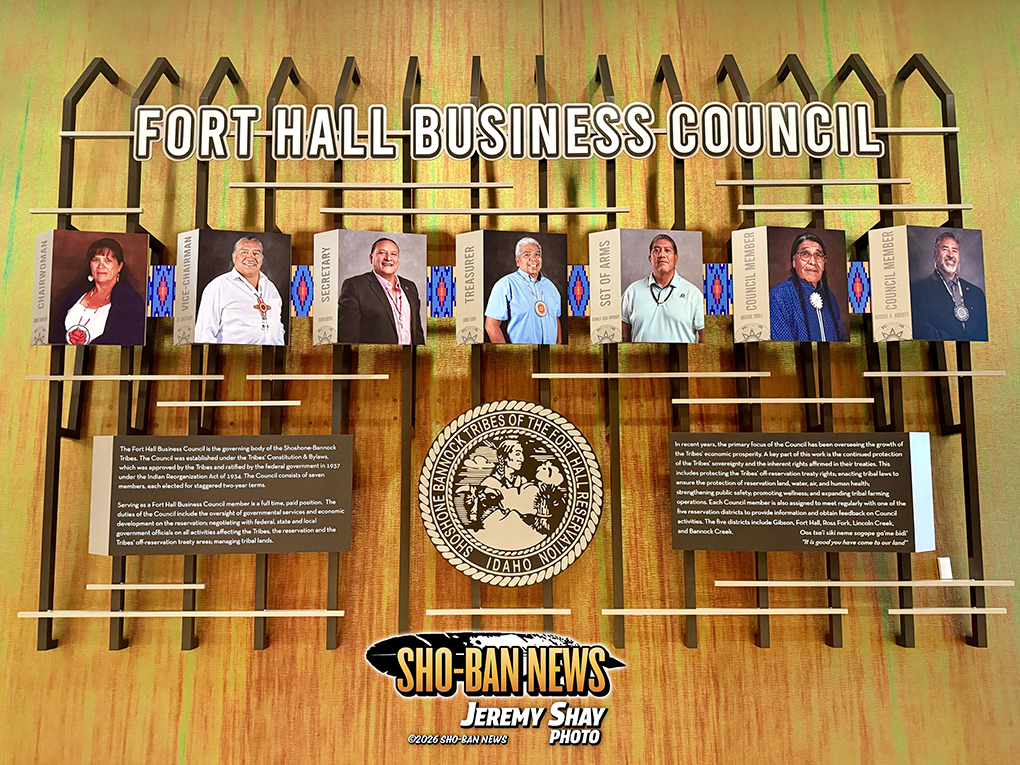 Redesigned installation for Fort Hall Business Council member portraits and informational signage.