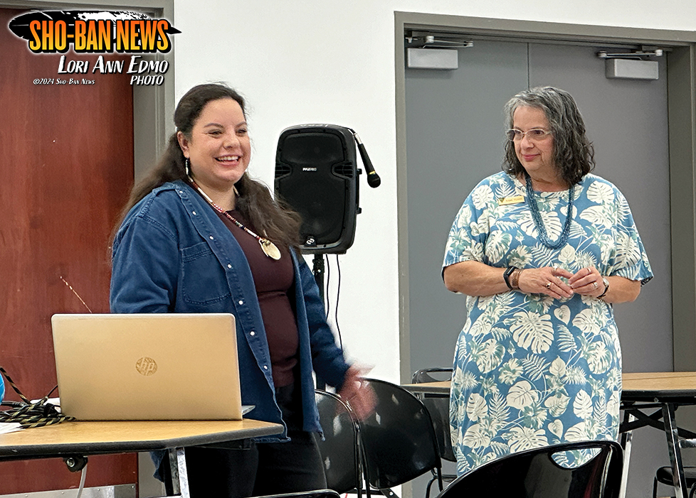 LCPD's Bailey Dann and Idaho BLM Tribal Liaison Susan Filkins present at the May 18 Tamme Pasigo Maviziakande