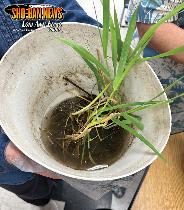 FORT HALL — Participants at the May 18 Tamme Pasigo Maviziakande (we take care of camas) workshop were encouraged to learn how to rid the invasive grass Garrison’s creeping meadow foxtail that is choking out the traditional food source at the Camas Prairie near Fairfield.