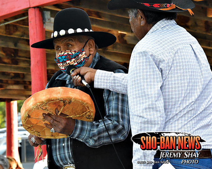 Sho-Ban tribal elder Lathaniel Nappo sings a hand drum song.