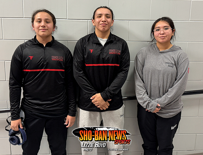 Highland has four Shoshone-Bannock tribal members on the team, Keen Wilson, Reid Pokibro who both wrestle on the Varsity team, Cincee Washakie and Kylaila Wadsworth who both wrestle on the girls team — both did not wrestle as one was injured and one was absent.