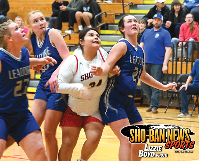 Sho-Ban Lady Chief Keilee Brunette looks up for a rebound against Leadore on Monday, January 12 at home.