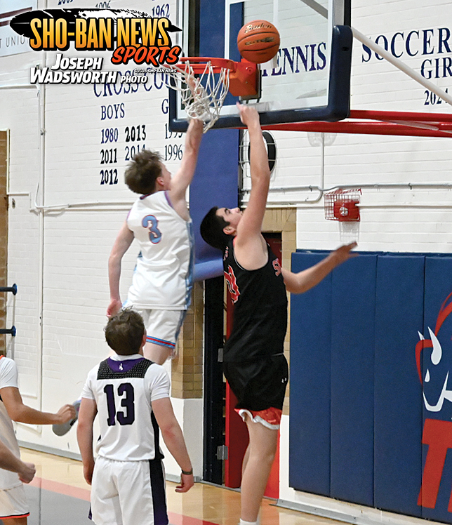 Sho-Ban player Maddox Edmo-McArthur goes for a layup in the 5th District All Star game.