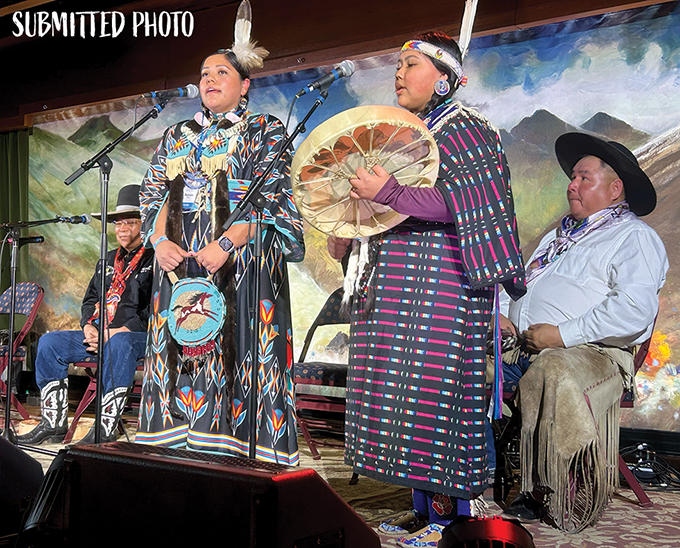 ELKO, Nev. — Traditional Chief Phillip Whiteman Jr. (Northern Cheyenne) invited Kaycee Dixey, Susan Avila-Dixey (both Sho-Ban), and James Shoshone (Owyhee, Nev.) to the National Cowboy Poetry Gathering in Elko, Nev. to share circle dance songs, a brief history of the horse and how it helped the Shoshone-Bannock Tribes and Paiute people.