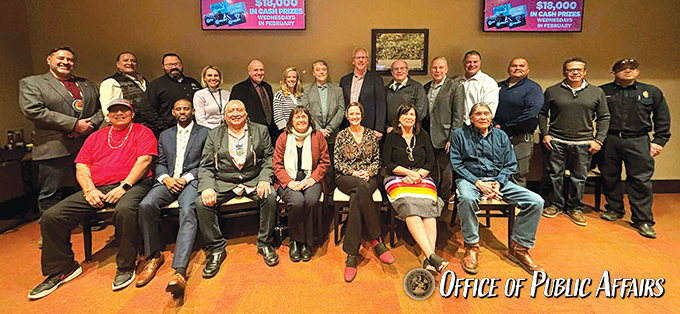 Fort Hall Business Council members, FHPD and Planning staff with city officials at the Sho-Ban Casino Hotel on February 26.
